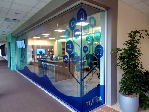 Trong UV dán cửa kính trong suốt là kỹ thuật hiện đại, sử dụng mực in UV để lên bề mặt kính trong suốt, cho phép ánh sáng xuyên qua mà vẫn giữ được màu sắc và hình ảnh rực rỡ. Cung cấp khả năng chống phai màu, chịu được độ sáng mạnh và thời gian giải quyết, in UV rất phù hợp cho các loại kính trang trí cửa hàng, văn phòng và cả nhà ở.